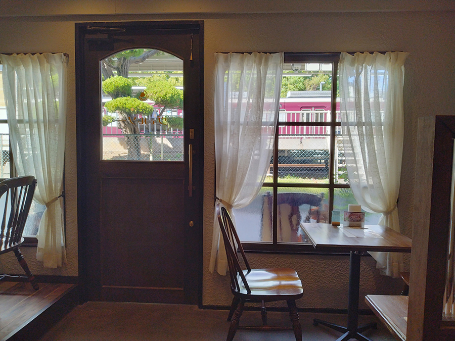 【長岡天神駅】レトロな店内から、レトロな阪急電車を。「喫茶フルール」