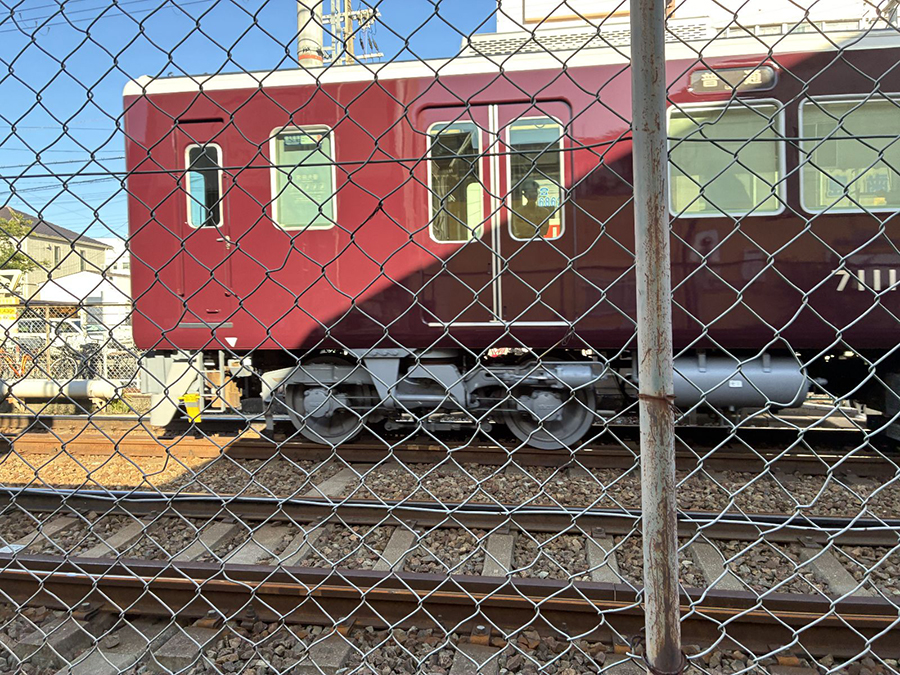 阪急電車の影がお店の壁に。まるでアートのようです