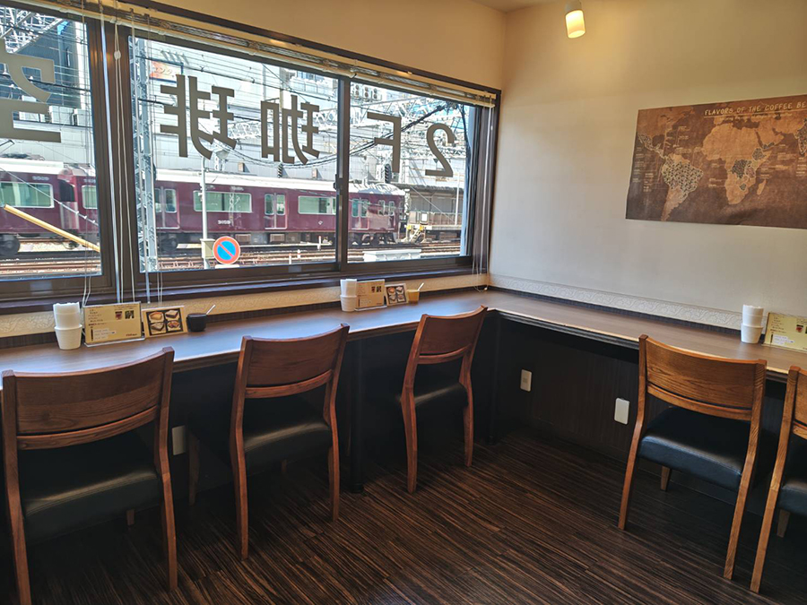 【十三駅】次から次へと電車が!途切れることなく電車を楽しめる「珈琲空間」