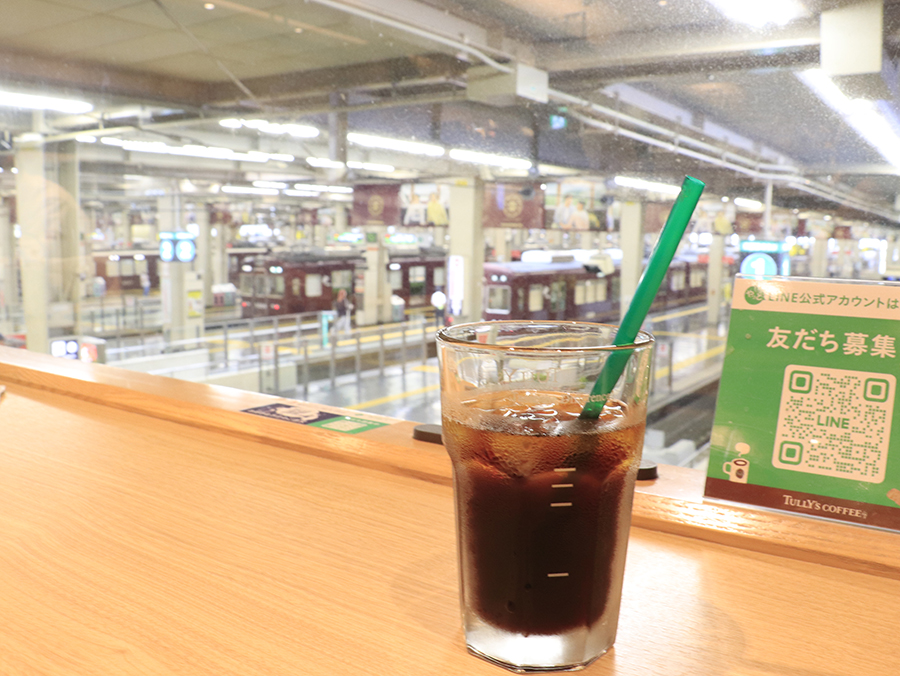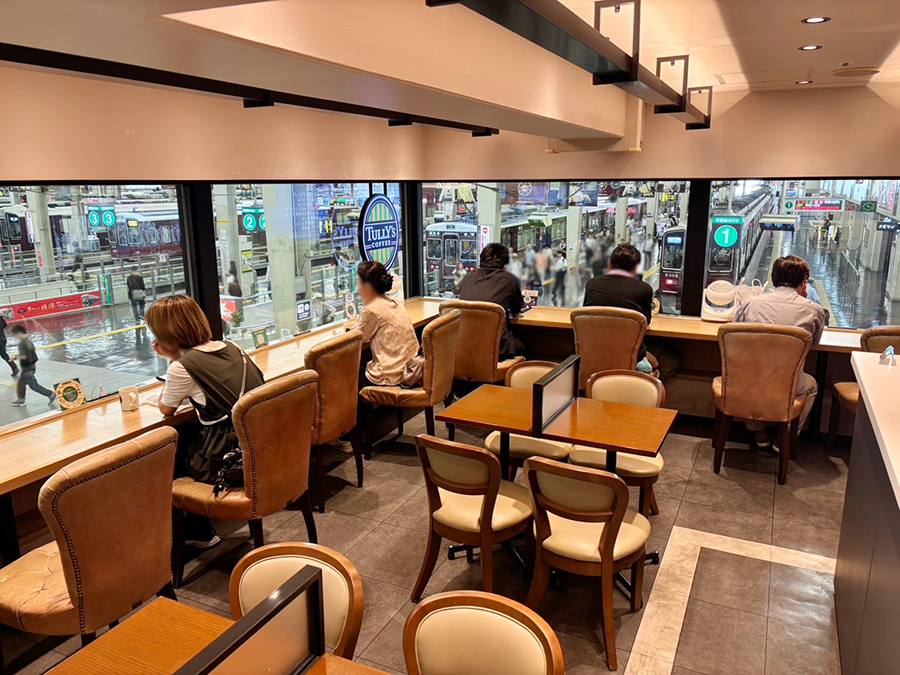 ちなみに、EKIZO神戸三宮内にある「タリーズコーヒー -SELECT- 阪急三宮店」からも阪急電車を見ることができます。大阪梅田駅とあわせて、ぜひチェックしてみては。